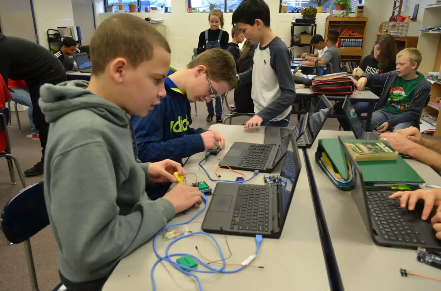 중학교 - 주도적인 질문과 프로젝트 기반 학습을 중심으로 구성된 중학교 학생(5학년~8학년)은 창의적인 협력자, 소통자, 비판적 사고자를 양성하는 통합 커리큘럼을 따릅니다.