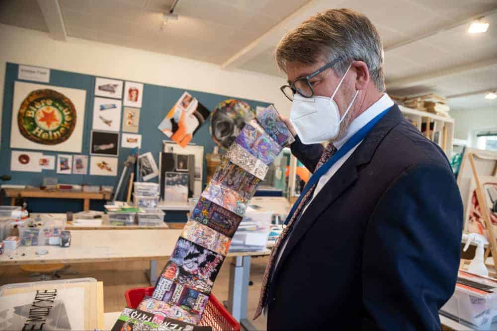 Mr. Dukes and Mr. Long each stick with the same cohort for two years—meaning Mr. Dukes will follow his current IB Visual Arts 1 students to IB Visual Arts 2 next year while Mr. Long will start over with a new group of students in IB Visual Arts 1—but the two outstanding educators share the same goals and work together to shepherd all students through the rigorous two-year program. They often stop by one another’s class to track the progress of the young artists and lend a hand where needed.