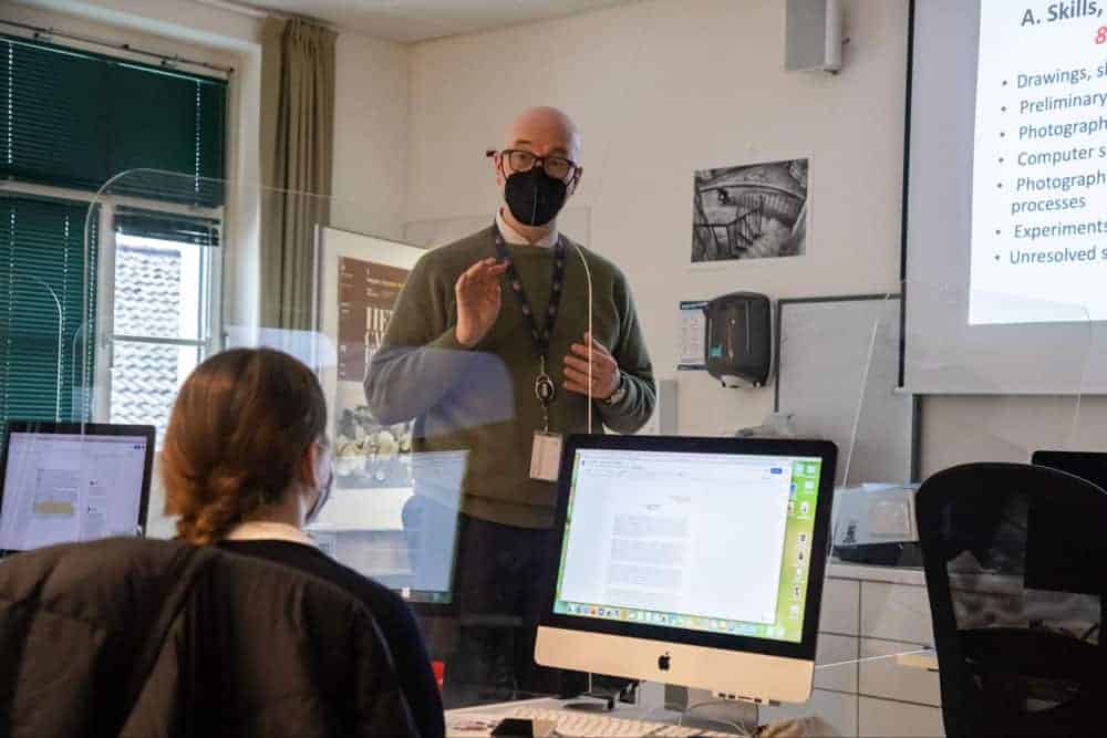 To offset the disruptions caused by the pandemic this year, Mr. Aeschliman has taken to sharing recorded presentations with students to review outside of class time. They must then create a sketch based on one of the examples he’s included in the presentation.