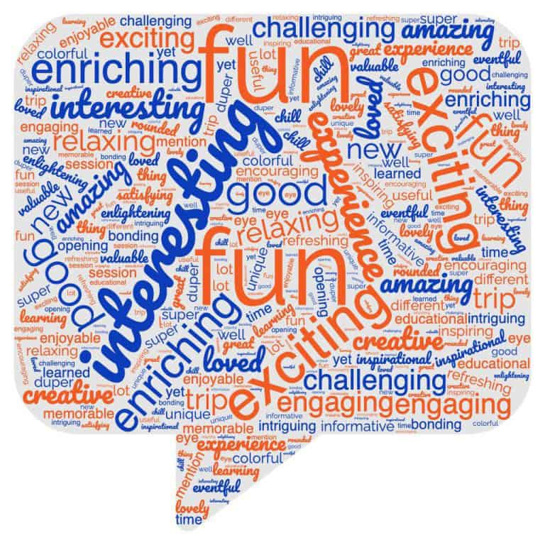 When asked to sum up their experience in five words, students described the experiences as shown in the graphic: