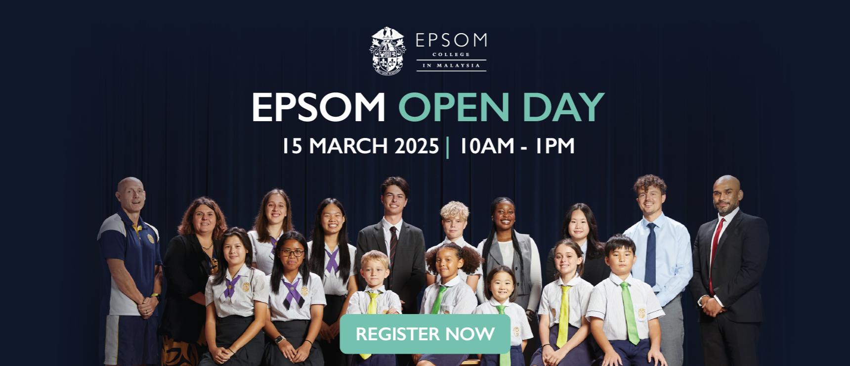 Mark your calendars for an extraordinary Open Day at Epsom College in Malaysia on 15th March 2025! Open Day Highlights: 1-1 Session Gain personalised insights through a one-to-one session with our experienced experts across various areas, including academics, pastoral care, boarding, and sport. This is a unique opportunity to ask any specific questions and understand how we support your child’s educational journey. Native Language Speakers Native language speakers will be available to ensure clear communication and provide personalised support for multilingual families, offering a comfortable and inclusive experience for all. Student-Led Tour Explore our world-class 50-acre campus on a guided tour led by our students. They’ll share their own experiences as you visit classrooms, boarding houses, world-renowned sports academies, and more. Departmental Showcase Interact with our dynamic academic departments through engaging showcases. Meet Heads of Department, discover our innovative teaching approaches, and take part in hands-on activities to experience first-hand what learning at Epsom College Malaysia is all about. Why Epsom College in Malaysia? The only sister school of the prestigious Epsom College UK, with nearly 200 years of heritage. Offering world-class British education from ages 3 to 18, Epsom combines academic excellence with outstanding pastoral care in a nurturing boarding environment. High-quality education combined with the benefits of boarding builds a strong foundation for students, preparing them for entry into top global universities such as Cambridge, Imperial, Stanford, London School of Economics, and University College London Distinct Value for Investment: Students receive the added value of boarding, excellent pastoral care, nearly 500 Co-Curricular Activities per year, and access to world-renowned sports academies such as the Mouratoglou Tennis Academy, LALIGA Academy Malaysia, and ECM Golf Academy. The first-class facilities span over a safe and secured 50-acre campus with lush greenery, located 15 minutes from the Kuala Lumpur International Airport—just a 4-hour flight from Hong Kong. Highly Qualified Teachers: Over 90% UK-trained expatriate teachers who live on-site and a low teacher-to-student ratio of 1:8, ensuring personalised attention. Multinational Environment: Over 30 nationalities on campus, fostering global citizenship in an English-speaking setting. Unparalleled Sports Programmes Mouratoglou Tennis Programme: The World’s top-ranked coaches from the French HQ provide training on our 11 International Tennis Federation-certified courts fit for the US and Australian Open, including the only indoor clay courts in South East Asia ECM Golf Academy: Top PGA professional golf coaches providing training on our 5-acre golf facility available on campus and guidance in Sports Scholarship and pathway to US universities LALIGA Academy Malaysia: Train with UEFA Professional coaches from Spain’s LALIGA Academy on our FIFA-certified 4G Astroturf field For more information, please contact us at contact@epsomschool.com Event Details: Date: 15th March 2025