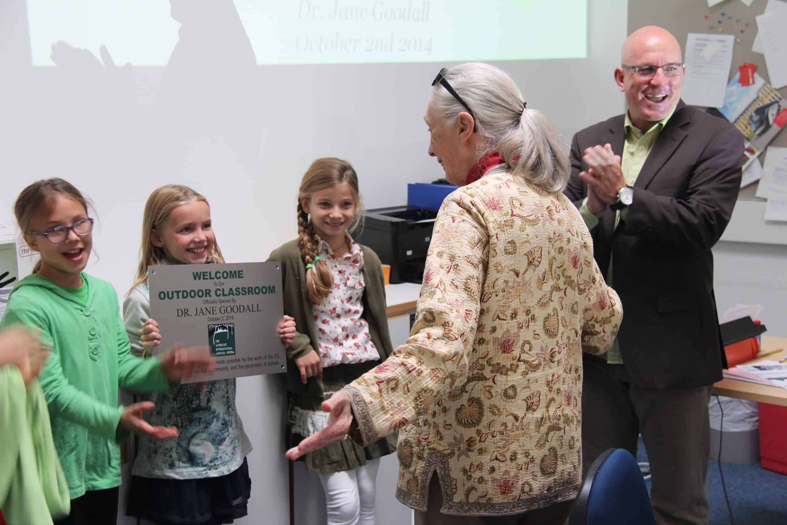 Dr. Jane Goodall, world-renowned scientist and international leader in environmental issues, officially dedicated the outdoor classroom during her visit to AIS in 2014. At the ribbon cutting, she praised AIS’ initiative to take learning outdoors and explore the natural world. A plaque on the fence door to the classroom memorializes this special endorsement. “AIS has a deep-rooted history in the Vienna Woods, celebrated since the opening of our current campus in 1964,” says Razidlo. “It’s an organic connection, grown from the value we place on a positive connection with nature.”
