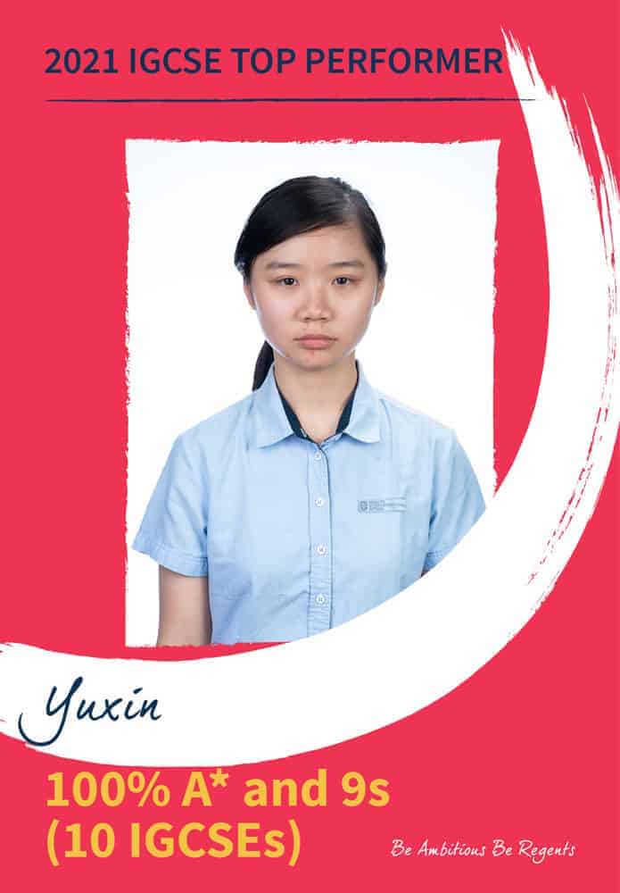 - Yuxin scored 100% A* and 10 IGCSE’s