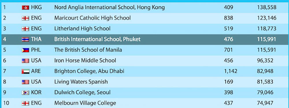 6th globally for ESOL/EAL out of 27 schools