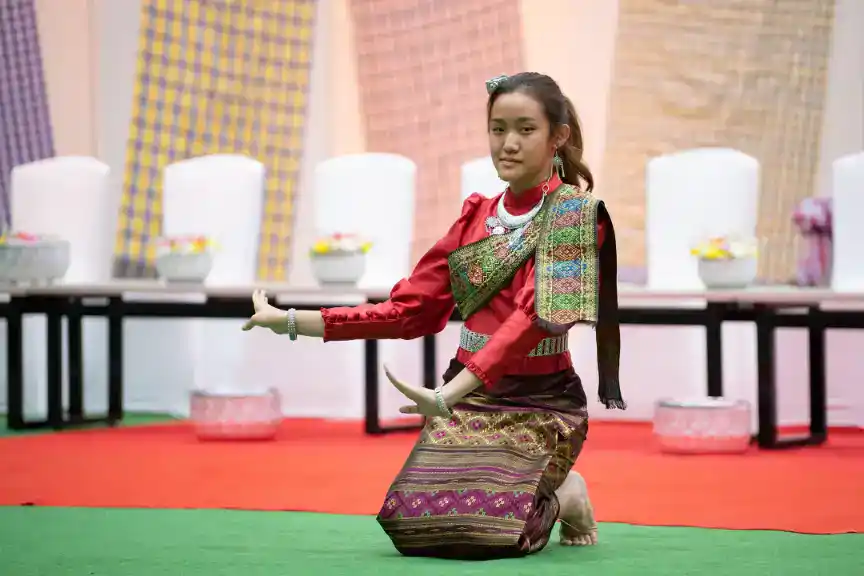 It showcases Thai arts, from fabrics to music and dance.