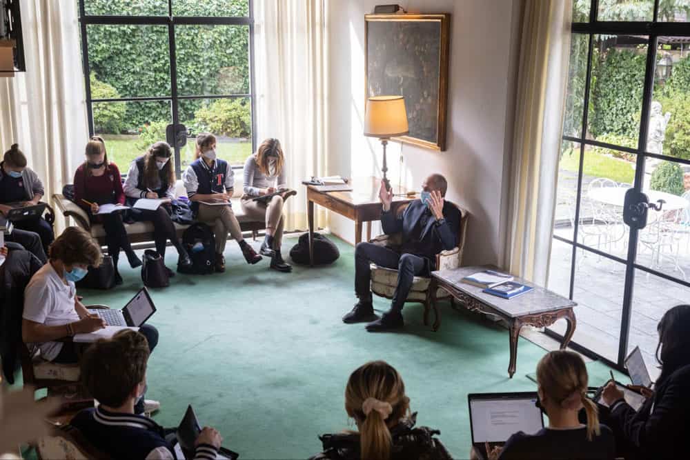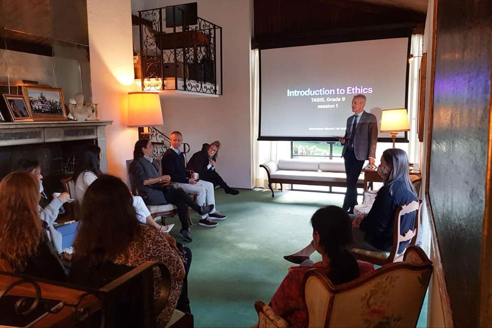 Headmaster Christoper Nikoloff has established a goal that all TASIS students graduate with a foundational introduction to central philosophical concepts that will serve them well in all areas of high school and university study. To that end, he began delivering lessons on virtue ethics to Theory of Knowledge (TOK) classes in 2019 and started leading a Truth, Goodness, and Beauty Seminar for sophomores in 2020.