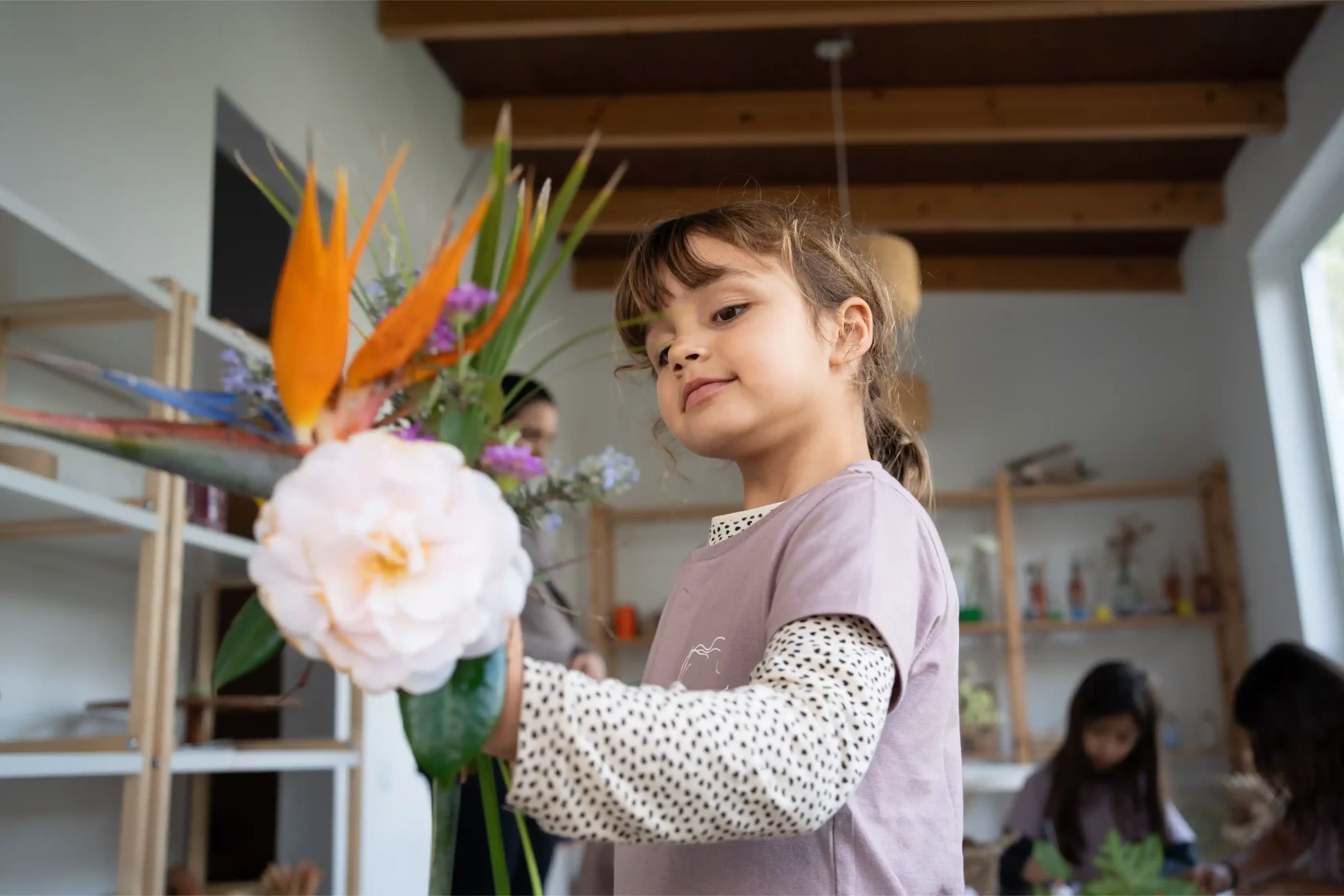 Okul öncesi İngilizce müfredatını kullanarak, bütünsel bir gelişimi desteklemek için Reggio Emilia, Montessori ve Orman Okulu'nun en iyi uygulamalarını bir araya getiriyoruz. Eğitime ilgi çekici ve eğlenceli bir başlangıç sağlamak için güzelce tasarlanmış ortamlar ve son derece eğitimli, sevgi dolu eğitimcilerimizle hizmet veriyoruz.
