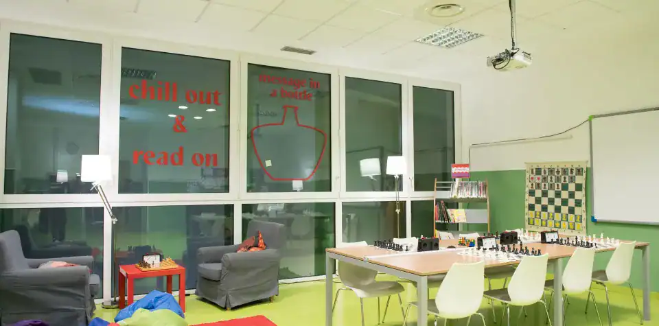 Okulumuzun son teknoloji binası, her türlü öğrenme ve öğretim ihtiyacını karşılayacak şekilde özel olarak inşa edilmiştir. Roma'nın kuzeybatısında, şehir merkezine yakın, yaklaşık dört hektarlık doğal park alanına kurulmuş olan kampüsümüz, öğrencilere oyun oynama, keşfetme ve deneyimleme için birçok fırsat sunmaktadır.